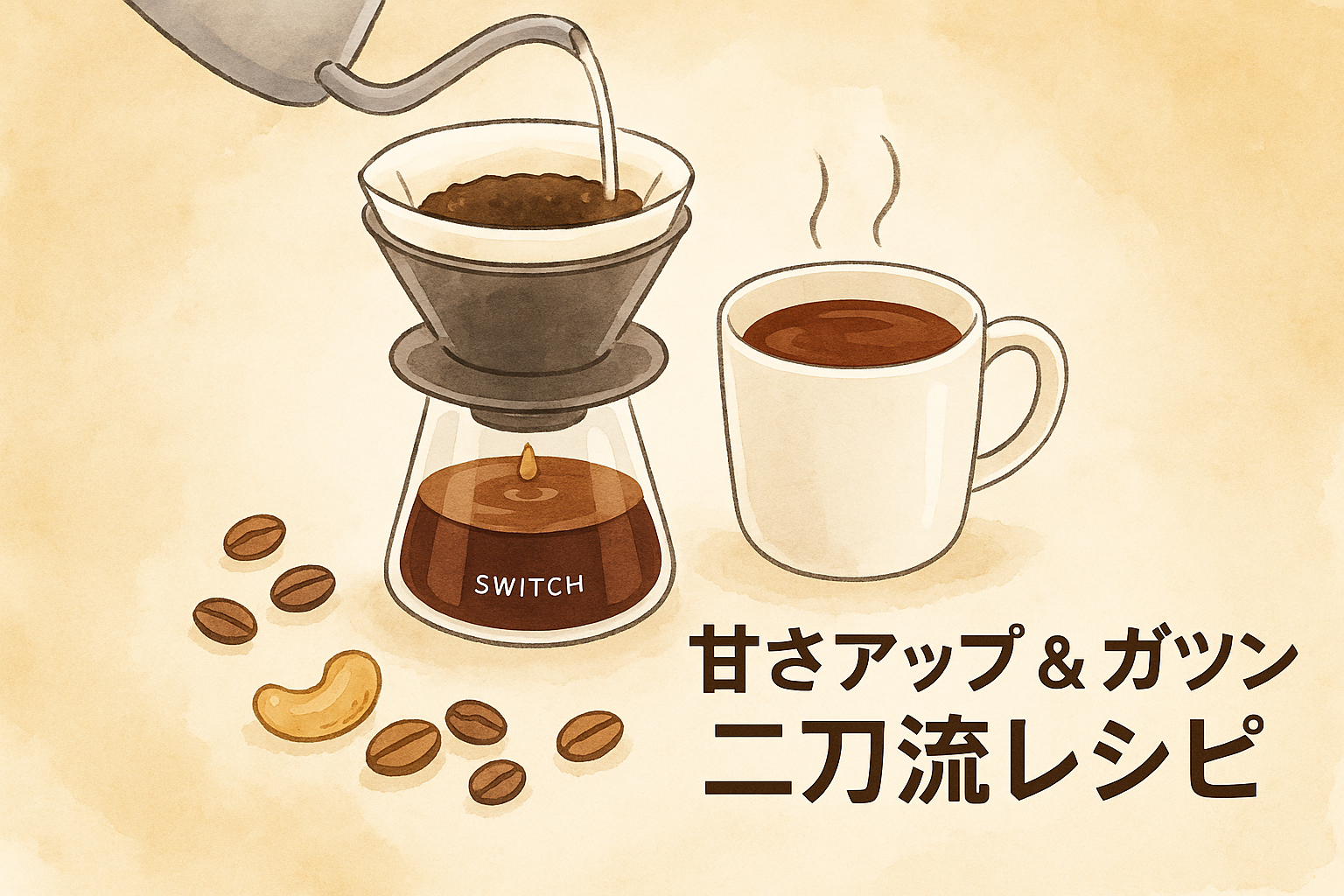 ローストナッツの甘香ばしさを“しっかり”感じたい人へ。SWITCH 360での抽出を基準に、甘さアップ版、朝のガツン版、そしてさらに甘みを盛る小ワザをまとめました。1ブロックでコピペOK。