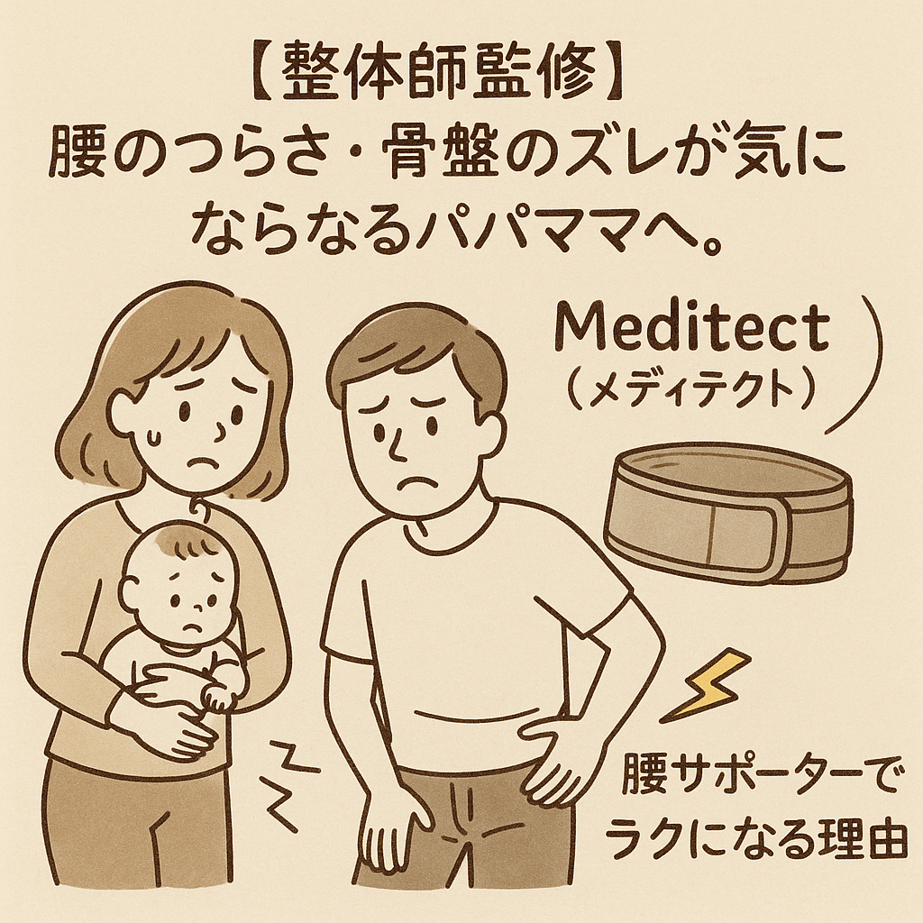 【整体師監修】腰のつらさ・骨盤のズレが気になるパパママへ。「Meditect(メディテクト)」腰サポーターでラクになる理由